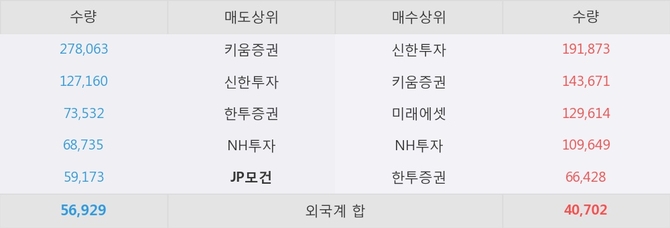 거래원 동향은 미래에셋, NH투자 등이 매수 상위 목록에 나타나고 있다. 한편, 매도 창구 상위에는 JP모건이 눈에 띄고 있다.