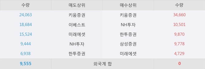 거래원 동향은 NH투자, 삼성증권, 미래에셋 등이 매수 상위 목록에 나타나고 있다.