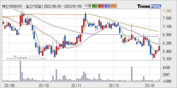 혜인의 2021년 매출액은 전년대비 -5.1% 줄어든 2064억원이고, 영업이익은 전년대비 2.7% 늘어난 91억원을 기록했다. 이 회사의 매출액 증감률과 영업이익 증감률은 각각 코스피 하위 13%, 하위 40%에 해당된다.