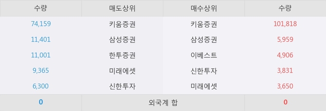 거래원 동향은 삼성증권, 미래에셋 등이 매수 상위 목록에 나타나고 있다.