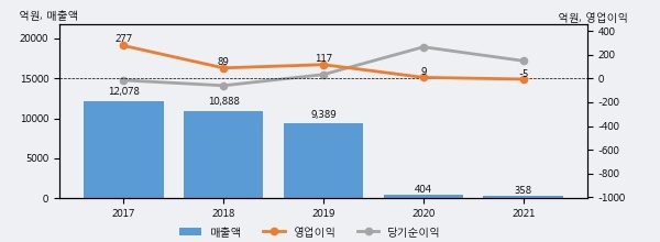 최근 3년간의 실적을 살펴보면, 매출액은 3년 연속 하락하고 있으나 그 하락폭은 줄어들고 있음을 알 수 있다.
