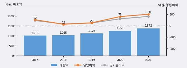 최근 3년간의 실적을 살펴보면 안정적 성장세를 보이고 있다. 최근 3년간 매출로 볼 때 매년 꾸준히 증가하고 있다. 다만 최근에 그 증가폭이 다소 감소하고 있다.