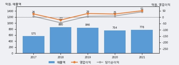 NE능률은 2021년 매출액 778억원과 영업이익 51억원을 기록했다. 전년대비 매출은 3.3%, 영업이익은 102.0% 각각 상승했다. 이 회사의 매출액 증감률과 영업이익 증감률은 각각 코스닥 하위 31%, 상위 25%에 해당된다.