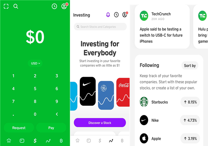 첫 번째로 소개할 모바일 앱(App)은 미국의 ‘블록’ 사가 개발한 Cash App이다. Cash App을 개발한 ‘블록’은 2009년 트위터의 공동창업자로 유명한 ‘Jack Dorsey’와 그의 동료인 ‘Jim McKelvey’가 설립했고 2015년 11월 뉴욕 증권 시장에 상장했다. 이 앱의 시작은 2013년 10월 15일 ‘Square Cash’라는 간편 송금 서비스를 제공하는 앱으로 시작했고 Stock Investment 부분은 2019년 10월에 서비스를 시작했다.