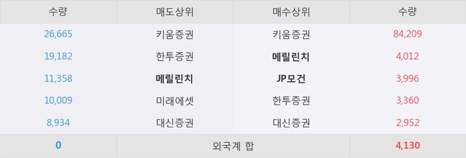 현재 거래원 동향을 보면 메릴린치와 JP모건이 각각 순매수 상위 창구 2위와 3위를 기록하고 있다. 한편, 매도 창구 상위에는 메릴린치가 눈에 띄고 있다.