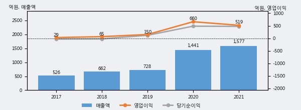최근 3년간의 실적을 살펴보면 안정적 성장세를 보이고 있다. 최근 3년간 매출로 볼 때 매년 꾸준히 증가하고 있다. 다만 최근에 그 증가폭이 다소 감소하고 있다.