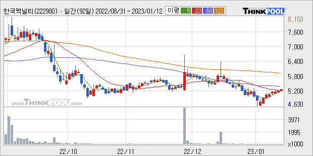 한국맥널티의 2021년 매출액은 전년대비 8.9% 늘어난 534억원이고, 영업이익은 전년대비 -51.5% 줄어든 16억원을 기록했다. 이 회사의 매출액 증감률과 영업이익 증감률은 각각 코스닥 하위 41%, 하위 23%에 해당된다.