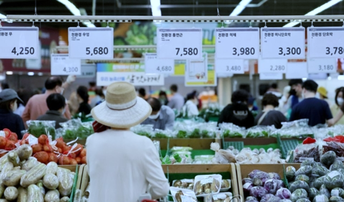 14일 한국농수산식품유통공사(aT) 가격정보에 따르면 12일 소매가격 기준 적상추는 1513원(100g)에 팔려 한달 사이 가격이 75.3%나 껑충 뛰었다. 오이도 10개 기준 1만8330원으로 한 달 전보다 49.6% 상승했다. 평년(1만3661원)과 비교했을 때 5000원 가까이 물가가 오른 셈이다.