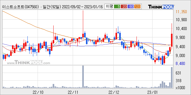 이스트소프트의 2021년 매출액은 전년대비 7.1% 늘어난 896억원이고, 영업이익 또한 전년대비 71.3% 늘어난 101억원을 기록했다. 이 회사의 매출액 증감률과 영업이익 증감률은 각각 코스닥 하위 38%, 상위 32%에 해당된다.
