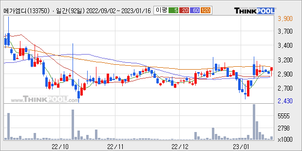 메가엠디의 2021년 매출액은 794억으로 전년대비 -3.7% 하락했고, 영업이익은 77억으로 전년대비 8.2% 상승했다. 이 회사의 매출액 증감률과 영업이익 증감률은 각각 코스닥 하위 22%, 하위 45%에 해당된다.