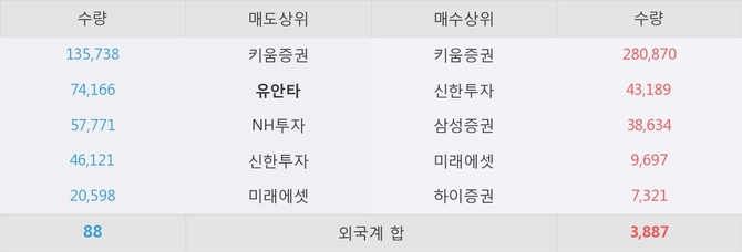 거래원 동향은 삼성증권, 미래에셋 등이 매수 상위 목록에 나타나고 있다. 한편, 매도 창구 상위에는 유안타가 눈에 띄고 있다.