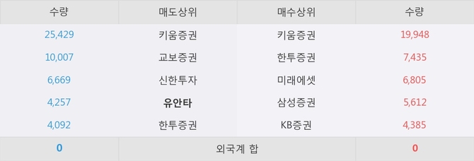 거래원 동향은 미래에셋, 삼성증권 등이 매수 상위 목록에 나타나고 있다. 한편, 매도 창구 상위에는 유안타가 눈에 띄고 있다.