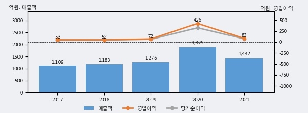 케이엠의 2021년 매출액은 전년대비 -23.8% 줄어든 1432억원이고, 영업이익 역시 전년대비 -80.5% 줄어든 83억원을 기록했다. 이 회사의 매출액 증감률과 영업이익 증감률은 각각 코스닥 하위 9%, 하위 17%에 해당된다.