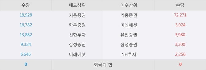 거래원 동향은 미래에셋, 삼성증권, NH투자 등이 매수 상위 목록에 나타나고 있다.