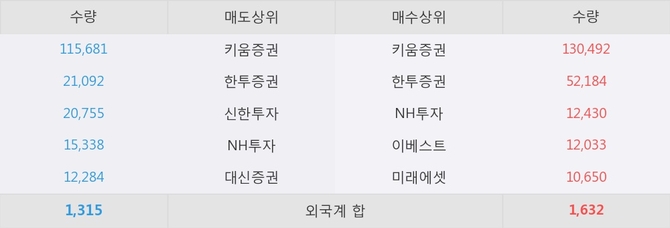 거래원 동향은 NH투자, 미래에셋 등이 매수 상위 목록에 나타나고 있다.