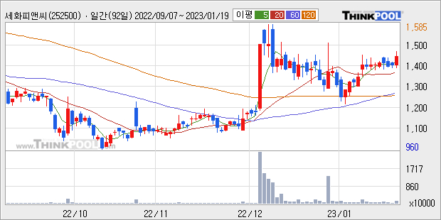 세화피앤씨는 2021년 매출액 397억원과 영업이익 54억원을 기록했다. 전년대비 매출은 8.4%, 영업이익은 4.2% 각각 상승했다. 이 회사의 매출액 증감률과 영업이익 증감률은 각각 코스닥 하위 40%, 하위 42%에 해당된다.