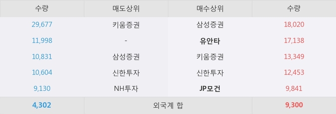 거래원 동향은 유안타, JP모건, 삼성증권 등이 매수 상위 목록에 위치하고 있다.