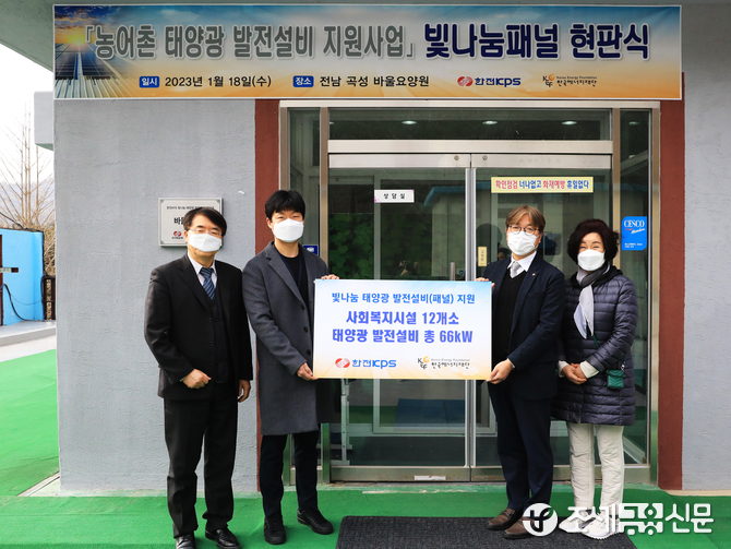 한전KPS는 지난해 전남 곡성군 바울 요양원을 비롯해 곡성군, 전북 무주군, 경북 예천군, 경남 밀양시 등 전국 12개 복지시설에 사업비 1억6천여만원을 들여 총 66㎾ 규모의 태양광 시설을 설치했다.