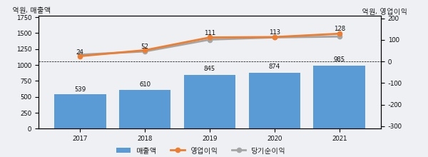 최근 3년간의 실적을 살펴보면 안정적 성장세를 보이고 있다. 최근 3년간 매출로 볼 때 매년 꾸준히 증가하고 있고 그 증가폭도 확대되고 있다.