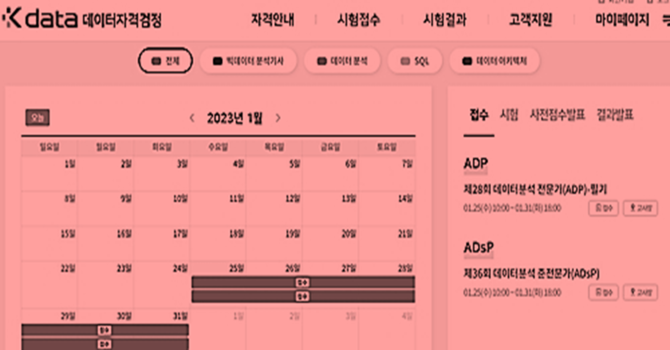 KDA 측은 이날 접수를 시작한 시험 응시자가 예상보다 많아 간헐적으로 접속 오류가 빚어졌다고 설명했다. 이 기관은 오전 10시부터 데이터분석 전문가(ADP) 필기시험과 데이터분석 준전문가(ADsP) 시험 신청을 받고 있다.