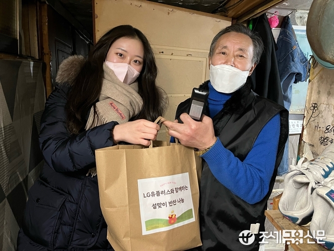(조세금융신문=송기현 기자) LG유플러스는 임직원 바자회를 통해 모은 수익금으로 서울 용산구 독거노인 60명에게 반찬과 과일로 구성된 선물 꾸러미를 증정했다고 27일 밝혔다.