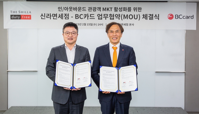 신라면세점은 지난 15일 비씨카드와 손잡고 내∙외국인 관광객 마케팅 활성화를 위한 MOU을 체결했다고 밝혔다.