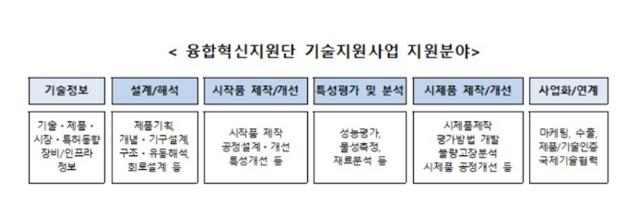 40개 공공연구기관으로 구성된 융합혁신지원단이 보유한 기술·인력·장비를 활용해 소부장 기업의 기술 자립화와 현장 애로를 해소하는 사업으로, 1년간 과제당 최대 5천만원이 지원된다.