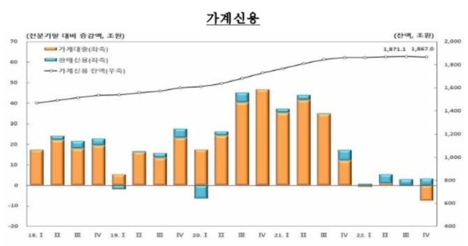 결과적으론, 판매신용이 큰 폭 증가했지만 가계대출 역시 대폭 감소하면서 가계신용은 3분기 보다 4조1000억원(-0.2%) 감소한 18672조원으로 집계됐다.