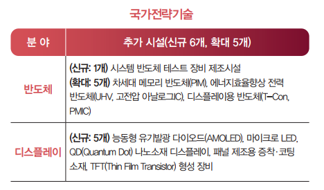국가전략기술의 경우 기존 반도체, 이차전지, 백신 3개 분야 31개에 디스플레이 분야에 더해 총 4개 분야 37개 시설로 확대한다.