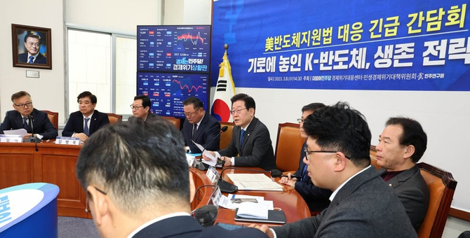 국회 기획재정위원회 소속 더불어민주당 의원들은 13일 삼성전자·SK하이닉스 등 반도체 업계 관계자들과 만나 투자 세액공제와 미국의 반도체지원법(CHIPS Act) 등에 대한 의견을 들었다.
