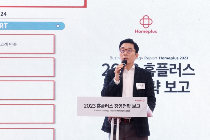 이제훈 홈플러스 사장이 13일 서울 등촌동 홈플러스 본사에서 열린 ‘2023년 경영전략 보고’를 통해 2023년 경영 키워드 ‘고객 경험’과 ‘지속 성장’을 발표하며 이같이 밝혔다.