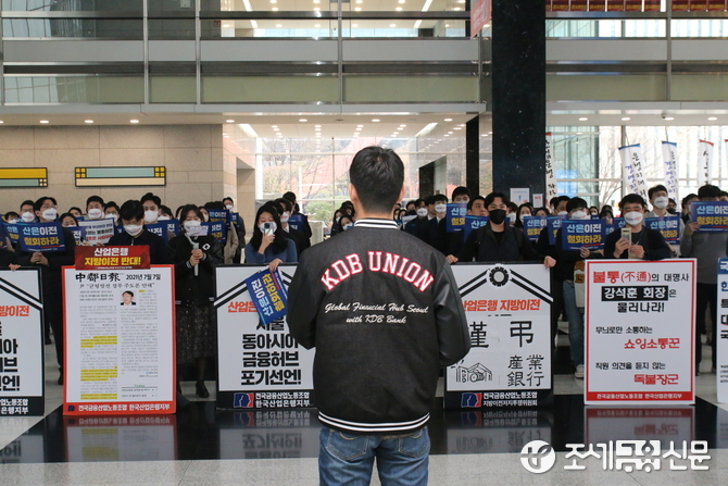 23일 금융권에 따르면 산은 노조는 이날 오전 9시10분께 산업은행 직원들의 부산 이전 반대 아침 집회를 피해 출근을 시도한 김 수석부원을 막아섰다. 수석부행장은 전무이사이자 산은 내에서 2인자로 꼽히는 자리다.