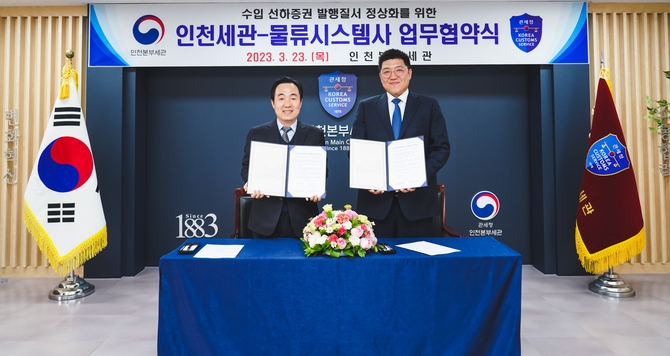 (조세금융신문=권영지 기자) 인천세관이 민간 물류시스템사와 수입 선하증권 발행질서를 정상화하기 위해 업무협약(MOU)을 맺었다.