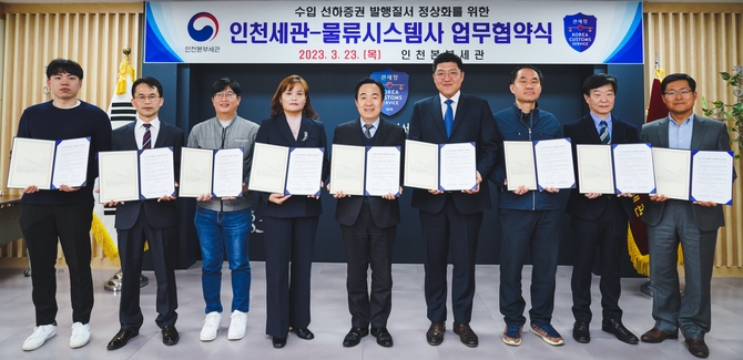인천본부세관(세관장 김재일)은 23 인천세관 본관에서 물류시스템사 9개사와 이러한 내용의 MOU를 체결했다.