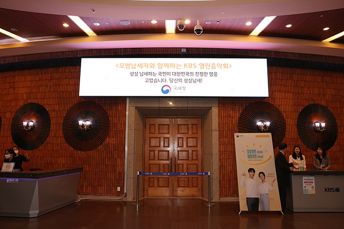 KBS홀 공연장 입구 전광판에는 ‘성실납세하는 국민이 대한민국의 진정한 영웅, 고맙습니다. 당신의 성실납세!’ 문구가 걸렸고, KBS홀 광장에도 모범납세자 성명과 사진이 있는 현수막 25개가 걸렸다.