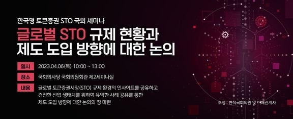 해당 세미나에서는 글로벌 토큰증권 시장의 제도 및 규제 현황의 파악과 한국형 토큰증권의 발행과 유통 활성화, 운용을 위한 정책에 대한 논의가 함께 이뤄질 전망이다.