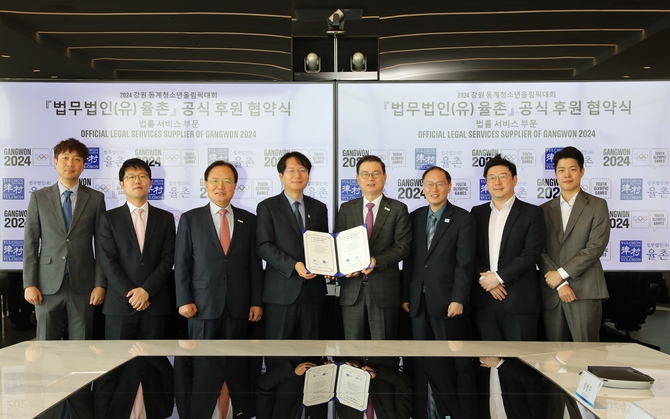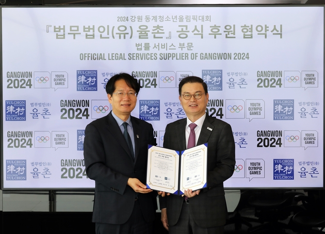 (조세금융신문=고승주 기자) 법무법인 율촌(대표변호사 강석훈)이 지난달 31일 서울 삼성동 율촌 본사에서 2024 강원 동계청소년올림픽대회 조직위원회(이하 조직위)와 공식 후원사 계약을 체결했다고 3일 밝혔다.