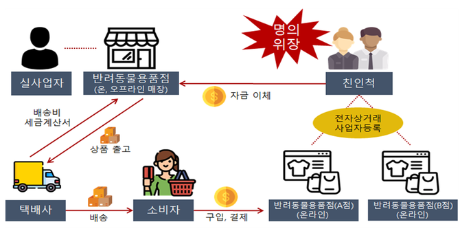 반려동물용품점을 운영하는 □□□도 소득 쪼개기를 위해 친인척 명의를 빌려 전자상거래업 사업자를 하나 만들었다.