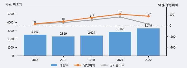 최근 3년간의 실적을 살펴보면 안정적 성장세를 보이고 있다. 최근 3년간 매출로 볼 때 매년 증가하고 있다. 다만 최근에 그 증가폭이 다소 감소하고 있다.