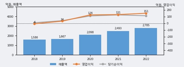 최근 3년간의 실적을 살펴보면 안정적 성장세를 보이고 있다. 최근 3년간 매출로 볼 때 매년 꾸준히 증가하고 있다. 다만 최근에 그 증가폭이 다소 감소하고 있다.