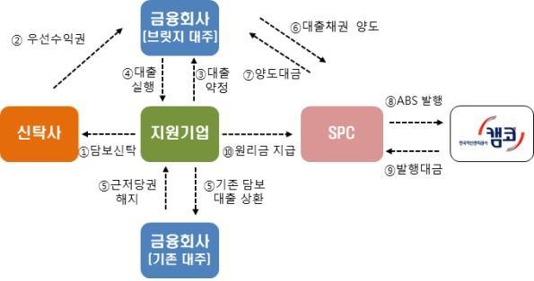 캠코에 따르면 기업이 공장·사옥 등 보유 자산을 담보로 담보신탁 대출을 실행하면 캠코가 설립한 특수목적법인(SPC)에서 이러한 담보신탁 대출 채권을 인수한 뒤 이를 기초 자산으로 하는 유동화증권(ABS)을 발행하는 구조다.