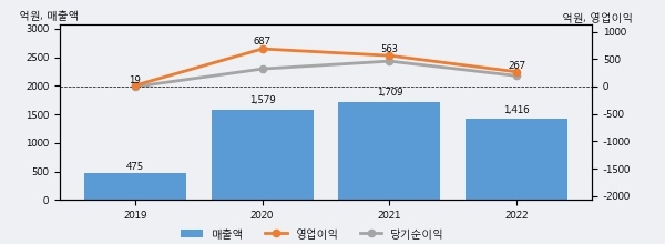 씨앤투스는 2022년 매출액 1416억원과 영업이익 267억원을 기록했다. 전년대비 매출은 -17.1%, 영업이익은 -52.6% 각각 하락했다. 이 회사의 매출액 증감률과 영업이익 증감률은 각각 코스닥 하위 13%, 하위 25%에 해당된다.