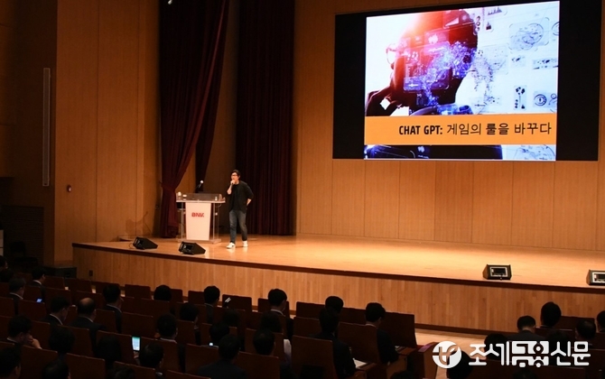 (조세금융신문=송기현 기자) BNK금융그룹은 17일 부산은행 본점에서 그룹 임직원의 디지털 역량 강화를 위해 그룹과 계열사 부서장 500여 명이 참석한 가운데 '챗GPT 이해와 활용' 강연회를 열었다.