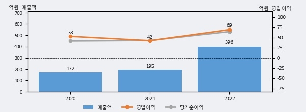 최근 실적을 살펴보면 2022년 매출액이 최근 3년 중 가장 높은 실적을 기록했음을 알 수 있다. 이전 최고 실적이었던 2021년 보다도 102.9%(201억 1천만원) 늘어난 것으로 나타났다.