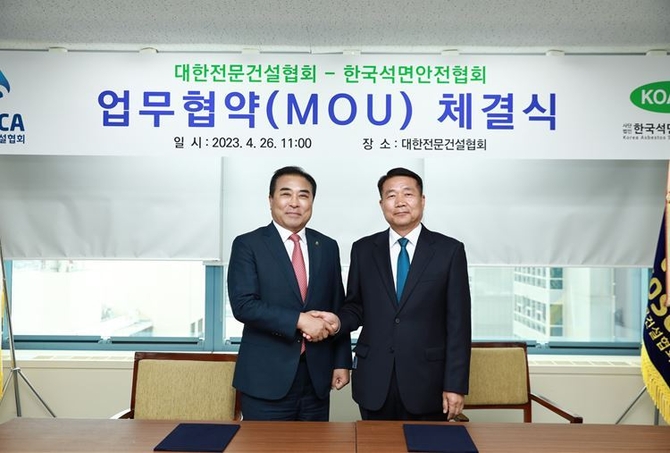(조세금융신문=구재회 기자) 대한전문건설협회는 (사)한국석면안전협회와 슬레이트 해체 및 지붕개량 전문공사 상생 협력 촉진 등을 위한 업무협약을 체결했다고 26일 밝혔다.