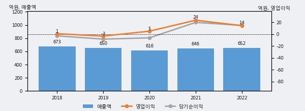 엔피케이는 2022년 매출액 652억원과 영업이익 14억원을 기록했다. 전년대비 매출은 1.0% 상승했고, 영업이익은 -39.0% 하락했다. 이 회사의 매출액 증감률과 영업이익 증감률은 각각 코스닥 하위 29%, 하위 28%에 해당된다.