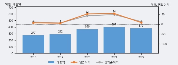 세화피앤씨의 2022년 매출액은 379억으로 전년대비 -4.4% 하락했고, 영업이익 역시 8억으로 전년대비 -84.7% 하락했다. 이 회사의 매출액 증감률과 영업이익 증감률은 각각 코스닥 하위 22%, 하위 17%에 해당된다.