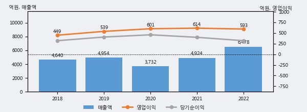 최근 실적을 살펴보면 2022년 매출액이 최근 5년 중 가장 높은 실적을 기록했음을 알 수 있다. 이전 최고 실적이었던 2019년 보다도 30.8%(1524억 1천만원) 늘어난 것으로 나타났다.