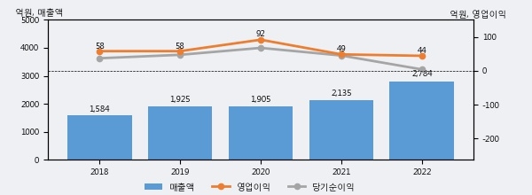 최근 실적을 살펴보면 2022년 매출액이 최근 5년 중 가장 높은 실적을 기록했음을 알 수 있다. 이전 최고 실적이었던 2021년 보다도 30.4%(648억 8천만원) 늘어난 것으로 나타났다.