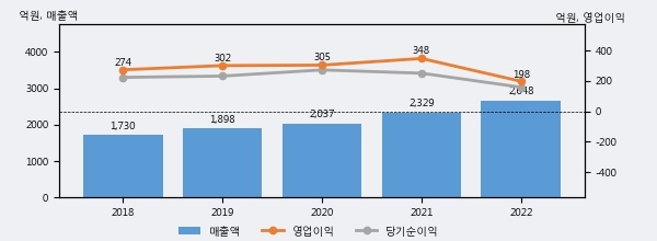 최근 3년간의 실적을 살펴보면 안정적 성장세를 보이고 있다. 최근 3년간 매출로 볼 때 매년 꾸준히 증가하고 있다. 다만 최근에 그 증가폭이 다소 감소하고 있다.